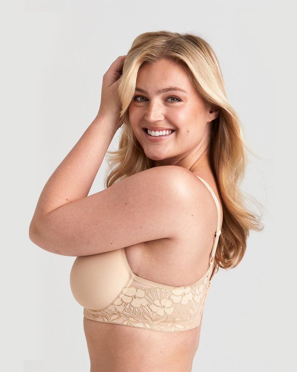 This bra has an extra-wide back. Together with the underwire, it provides incredible support and keeps your bust firmly in place throughout the day.